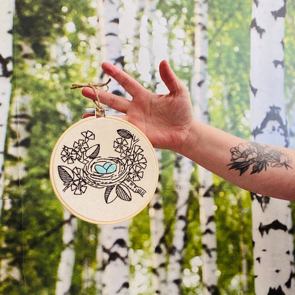 Hook, Line & Tinker embroidery kits feature original illustrations designed for beginner stitchers. Each illustration is repeatedly rendered through the craft of hand embroidery using a variety of basic, introductory stitches to build texture and a pleasing design.