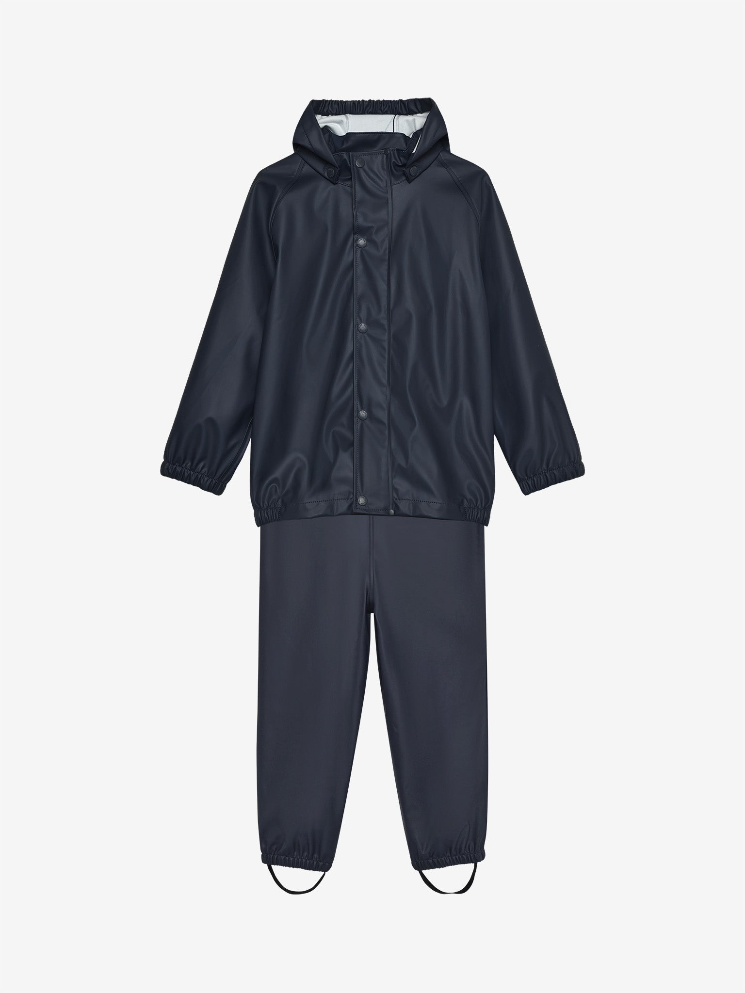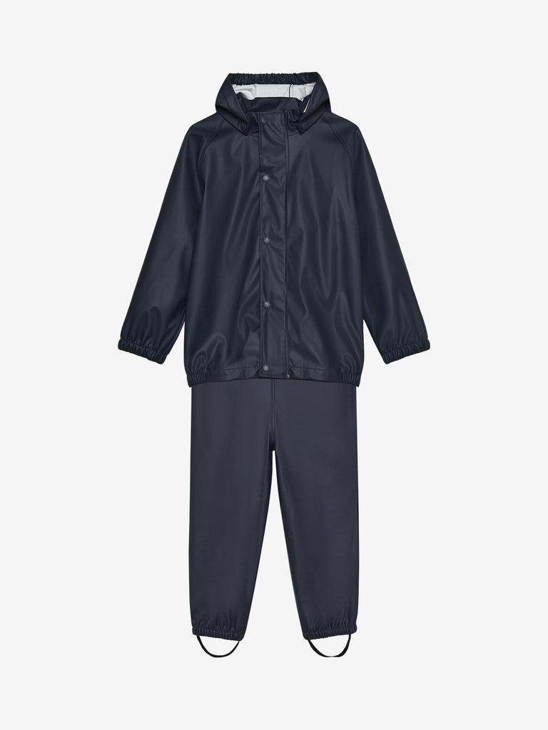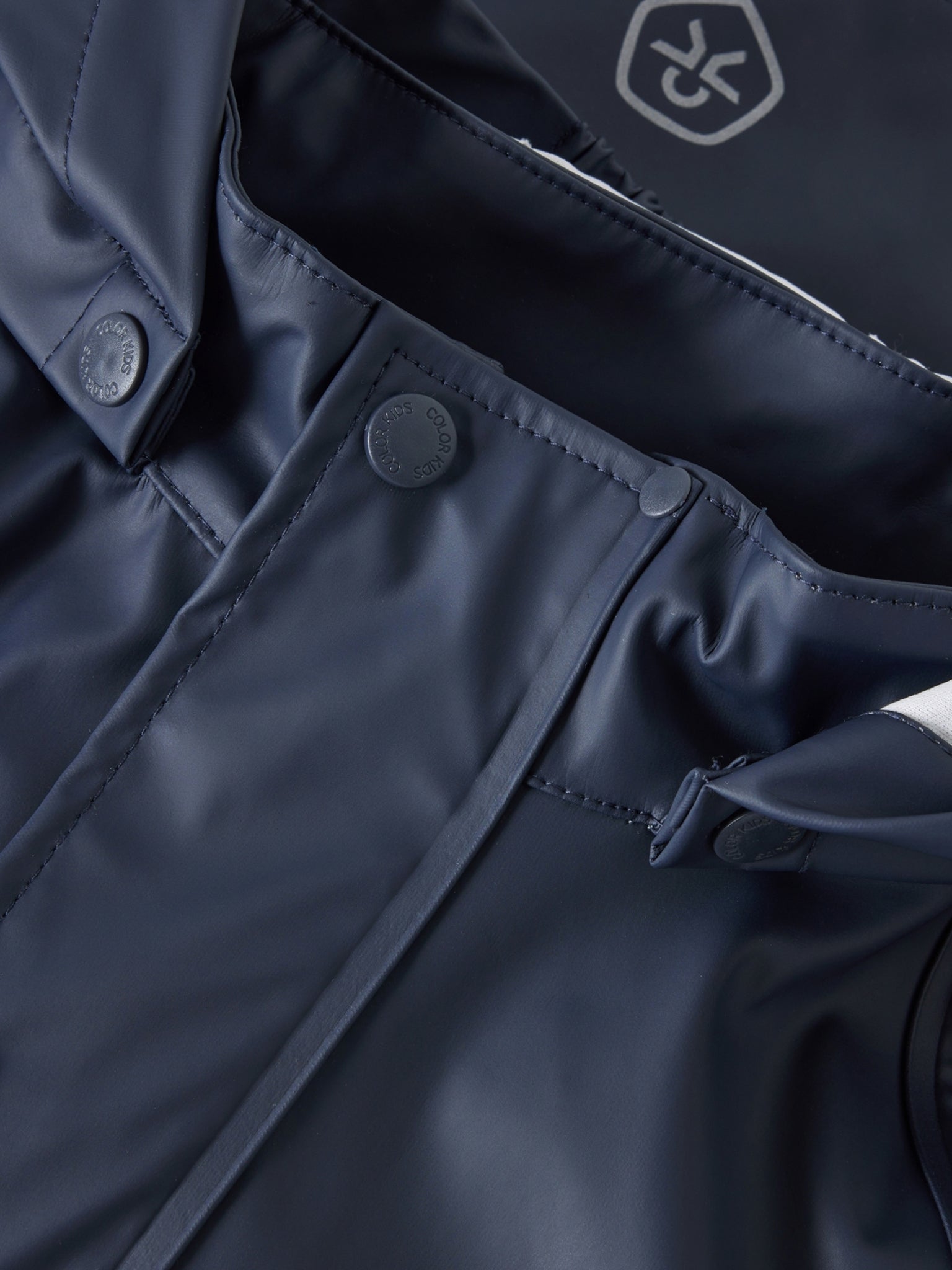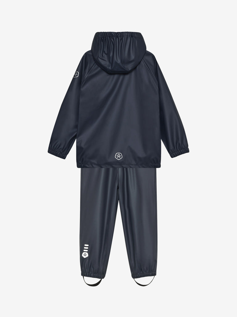 Classic children's outdoor gear from Color Kids - sister brand to our best selling Classic by Celavi. Both jacket and bibbed pants are made 100% Polyester with Polyurethane coating. The rainwear set is completely waterproof with taped seams and a water column pressure of 10.000 mm. Made with 66% Recycled Material