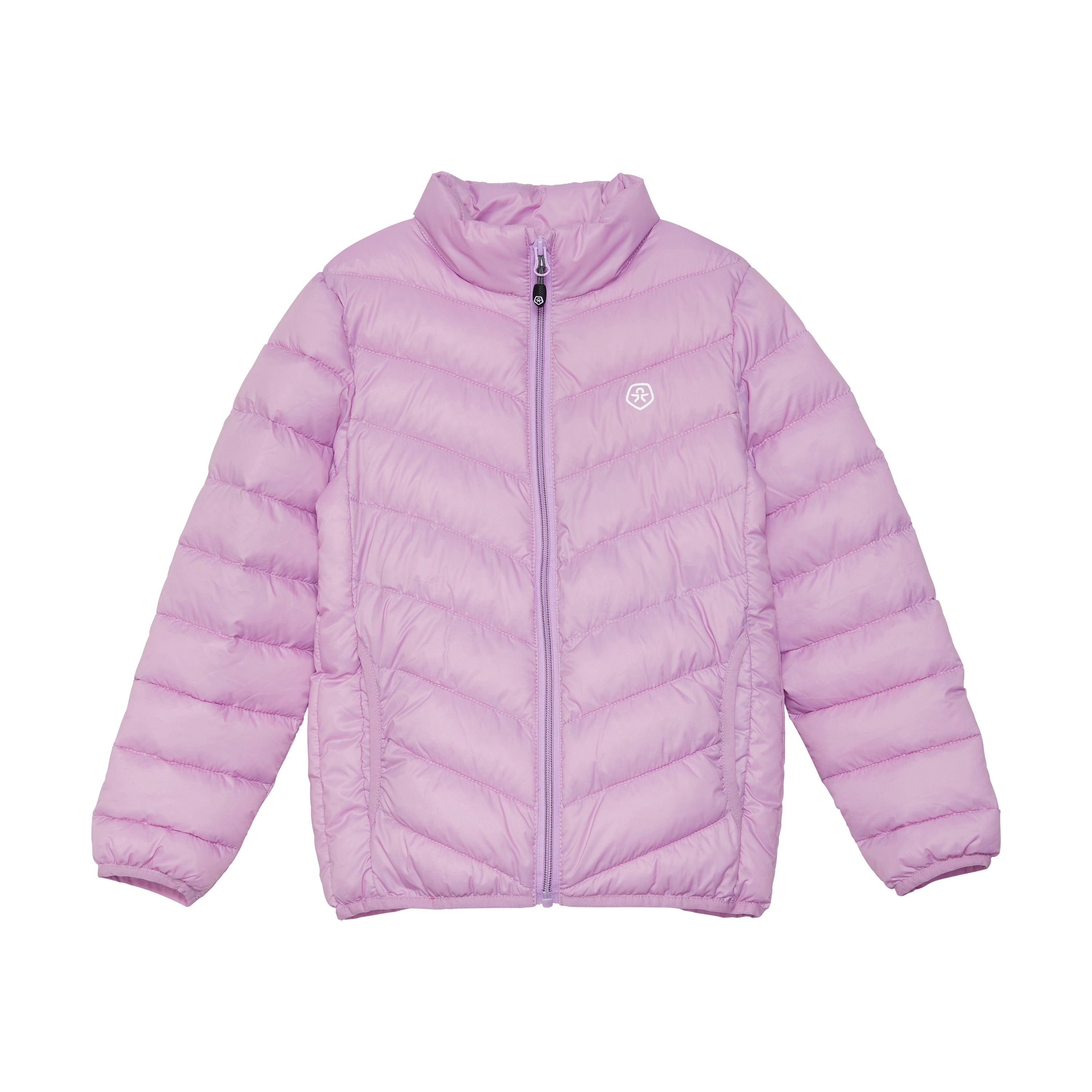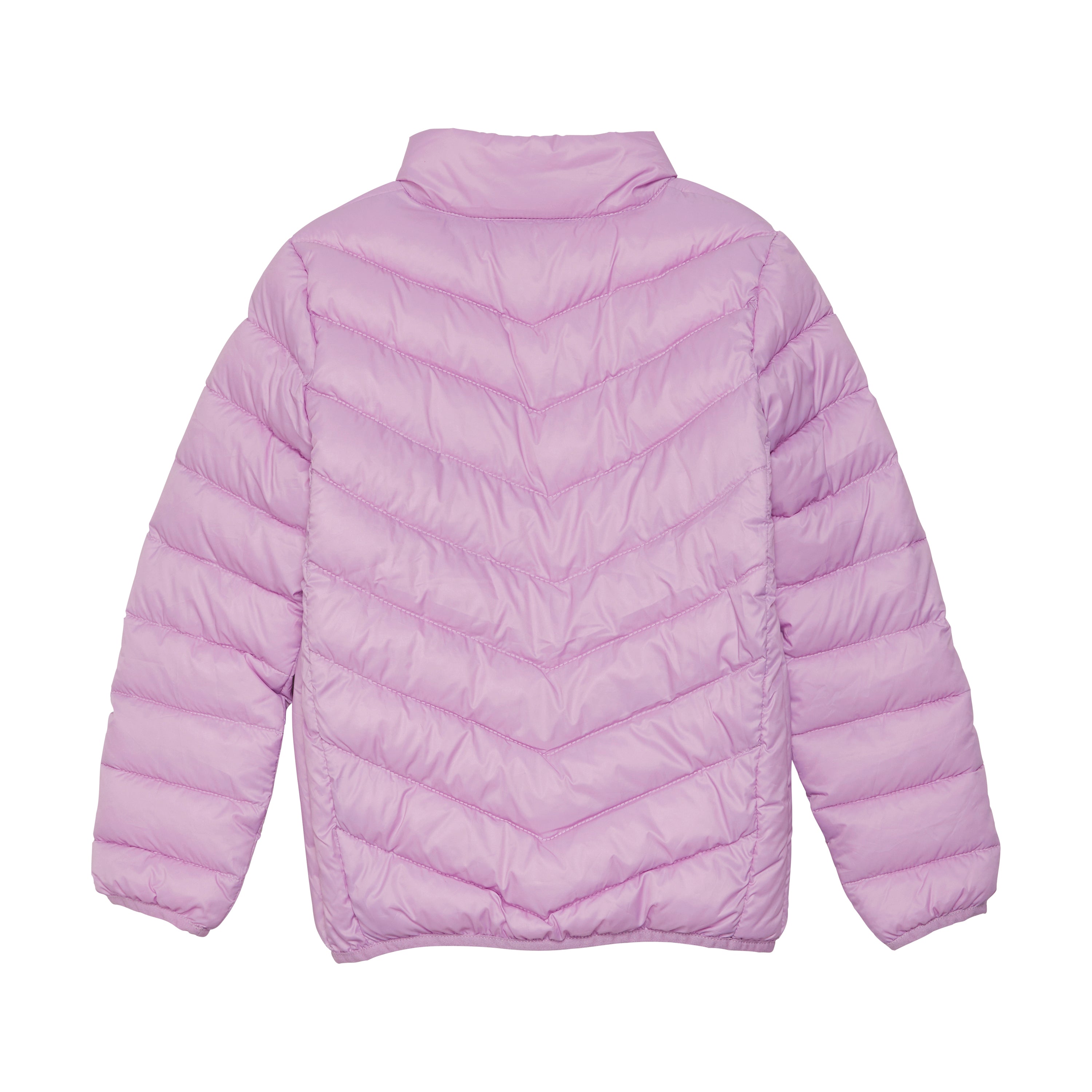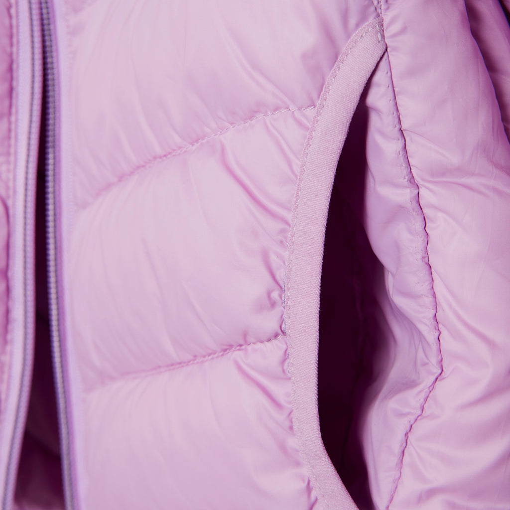 This synthetic down jacket has a sporty look and is lined in soft polyester to keep the wind out. It also features chin protection and reflective detailing.