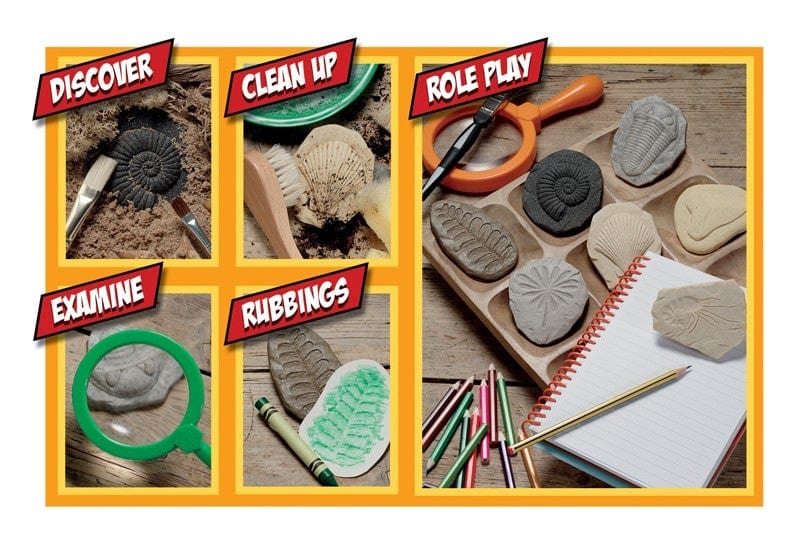 A fantastic early STEM resource to inspire children’s natural curiosity about the world around them. Fossils intrigue young children and they will delight in discovering and examining this set of eight realistic and tactile specimens, including ammonite, clam shell, fern leaf, preserved leaves, sea urchin, shark’s tooth, shrimp and trilobite. Made from a unique stone mix, they are robust enough to be used throughout an early childhood evironment, both inside and outdoors. Designed to fit snugly in small inquisitive hands, these fossils (3–3.5’’) have huge potential for discovery and storytelling and provide a great springboard to further activities.